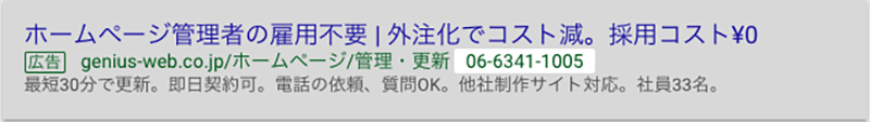 通常の広告にプラスしてリンクやテキスト、住所。電話番号等の情報を表示することができるオプションです。